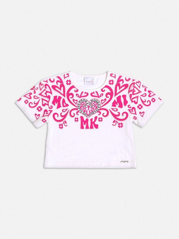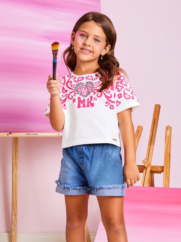 A blusa infantil Momi é confeccionada em cotton com estampa rosa delicada, realçada pela aplicação de strass, adicionando um toque de brilho. Com modelo mais curto, é uma peça versátil que combina com diferentes looks. As Momi Girls vão amar. Composição: 96% algodão e 4% elastano. Ref.: H4586