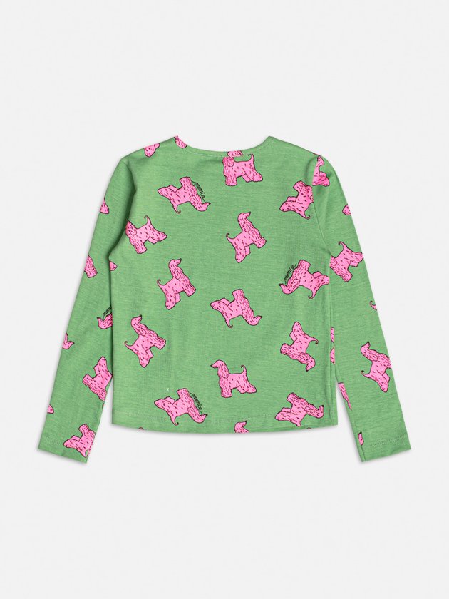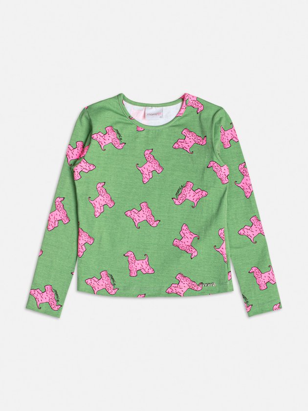 Uma blusa divertida e cheia de personalidade! Com fundo verde vibrante e estampa repetida de cachorrinhos em tom de rosa, ela é a combinação perfeita entre estilo e conforto. As mangas longas garantem aconchego nos dias mais frescos, enquanto o design moderno e a estampa única trazem um toque descontraído ao look. Ideal para quem ama um visual alegre e descolado, sempre com muito charme!