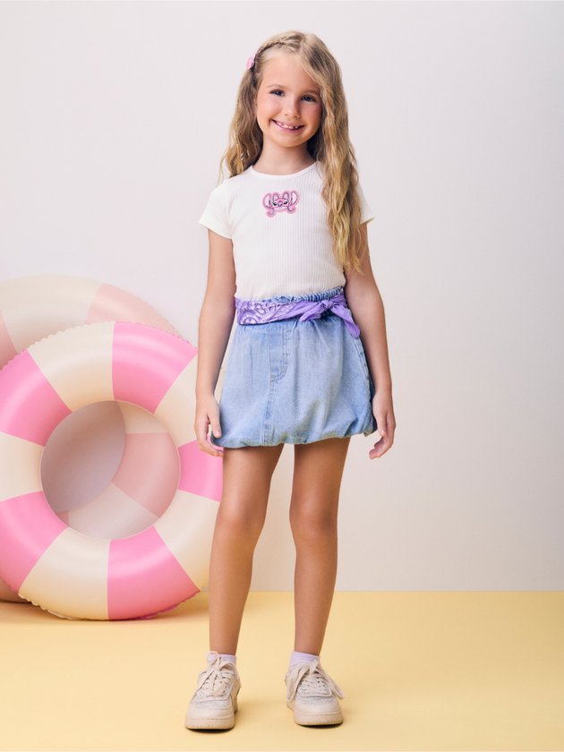 Perfeita para quem ama a personagem Angel! A blusa em ribana canelada traz patch bordado da personagem aplicado no centro, que adiciona um toque lúdico e super estiloso ao look. Modelagem justinha, confortável e fácil de combinar com diferentes produções. Ref.: H6369