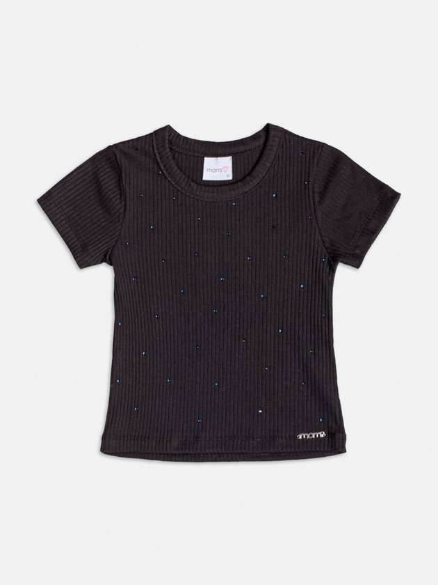 Um toque de brilho para os looks mais básicos! A blusa preta de manga curta da Momi combina a textura canelada com aplicações de strass delicados, que formam listras verticais sutis e sofisticadas. Versátil e charmosa, é perfeita para compor produções do dia a dia com um ar mais fashion, ou para ocasiões especiais com conforto garantido. Ref.: H6039