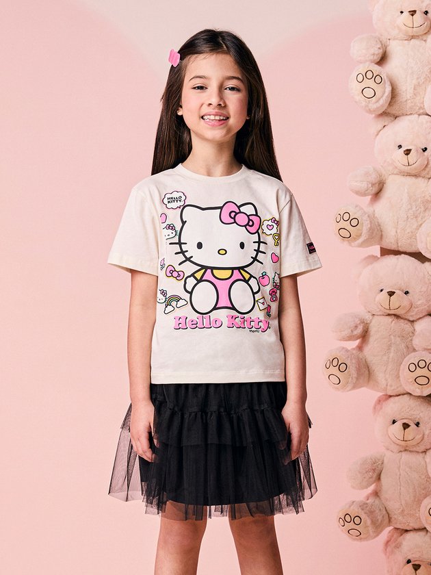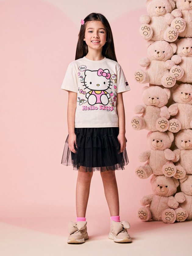 A Blusa Infantil Bege da Hello Kitty é perfeita para meninas que amam um look divertido e cheio de estilo. Feita em meia malha macia, oferece conforto e liberdade de movimento para todas as brincadeiras. A estampa frontal em destaque da Hello Kitty e seus ícones clássicos traz um ar alegre e encantador. Com gola em ribana e modelagem soltinha, é ideal para o dia a dia ou momentos de lazer. Combine com jeans, saias ou shorts coloridos para um visual moderno e super fofo. Um item essencial para as pequenas fãs da Hello Kitty. Ref.: H6908