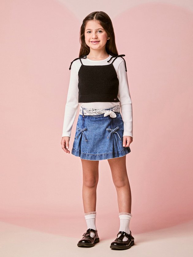 A Blusa Infantil com Top Preto de Tricot combina conforto e estilo em uma proposta pronta para atualizar o visual das pequenas. A blusa canelada é macia, veste superbem e funciona como base perfeita para qualquer look. Sobreposta, o top preto em tricot adiciona textura, contraste e aquele toque fashion fácil que deixa a produção mais moderna. As alças finas com amarração reforçam o charme do conjunto, criando um visual dois-em-um prático e cheio de personalidade. Um item versátil para compor desde looks casuais até produções mais arrumadinhas.