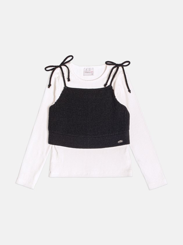 A Blusa Infantil com Top Preto de Tricot combina conforto e estilo em uma proposta pronta para atualizar o visual das pequenas. A blusa canelada é macia, veste superbem e funciona como base perfeita para qualquer look. Sobreposta, o top preto em tricot adiciona textura, contraste e aquele toque fashion fácil que deixa a produção mais moderna. As alças finas com amarração reforçam o charme do conjunto, criando um visual dois-em-um prático e cheio de personalidade. Um item versátil para compor desde looks casuais até produções mais arrumadinhas. Ref.: H7088