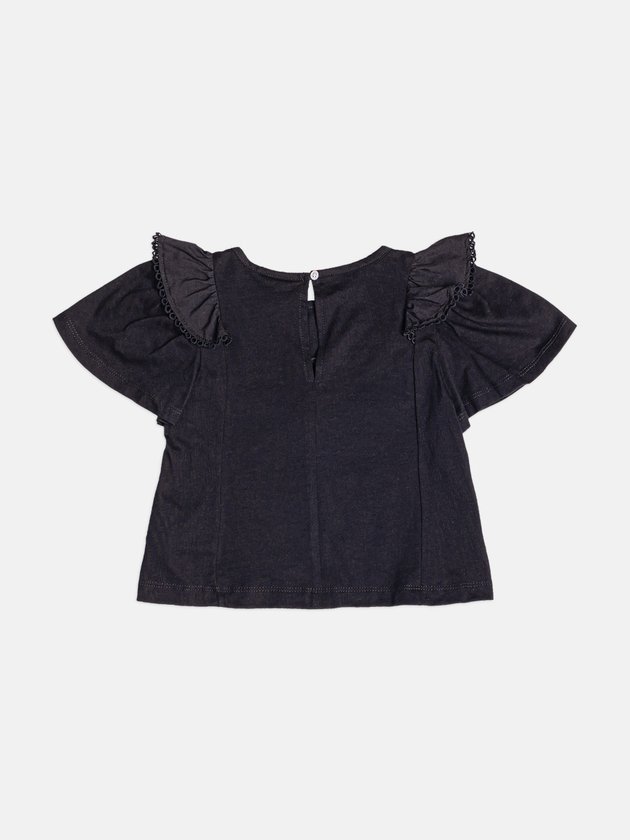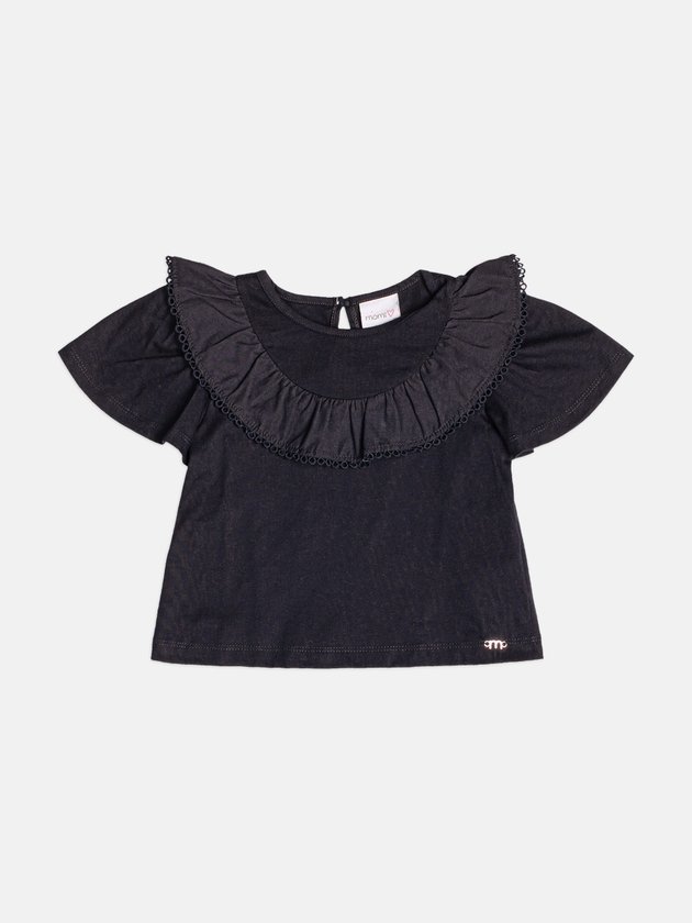 Blusa Infantil Manga Curta com Babado e Renda
