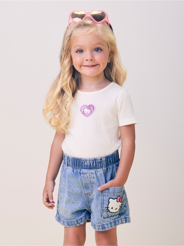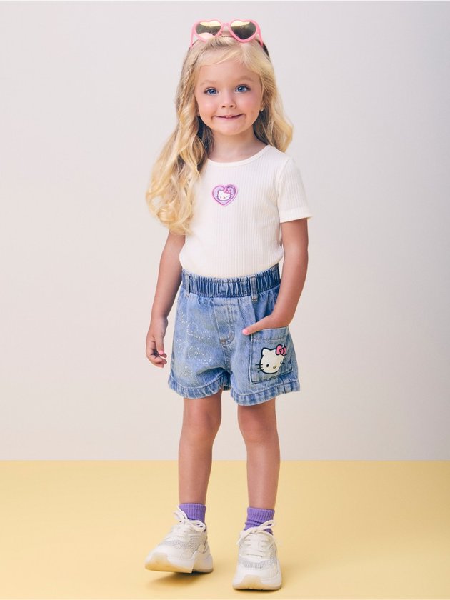A blusa canelada rosa da Momi é a combinação ideal entre conforto e estilo! Com modelagem ajustada e textura em ribana, a peça ganha destaque com o patch bordado da Hello Kitty em formato de coração, posicionado no centro. Uma escolha cheia de personalidade para as pequenas fashionistas, perfeita para looks despojados e delicados.