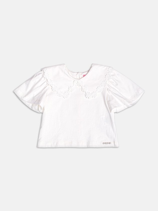 Delicada e sofisticada, essa blusa off white ganha destaque com a gola trabalhada em guipir em formato de florzihas, trazendo textura e elegância ao visual. O modelo é perfeito para compor looks românticos e atemporais, seja com jeans, saias ou shorts estampados. A malha macia garante conforto para o dia a dia, enquanto os detalhes finos elevam a peça com charme. Um clássico que se reinventa com a leveza da coleção de verão. Ref.: J6557