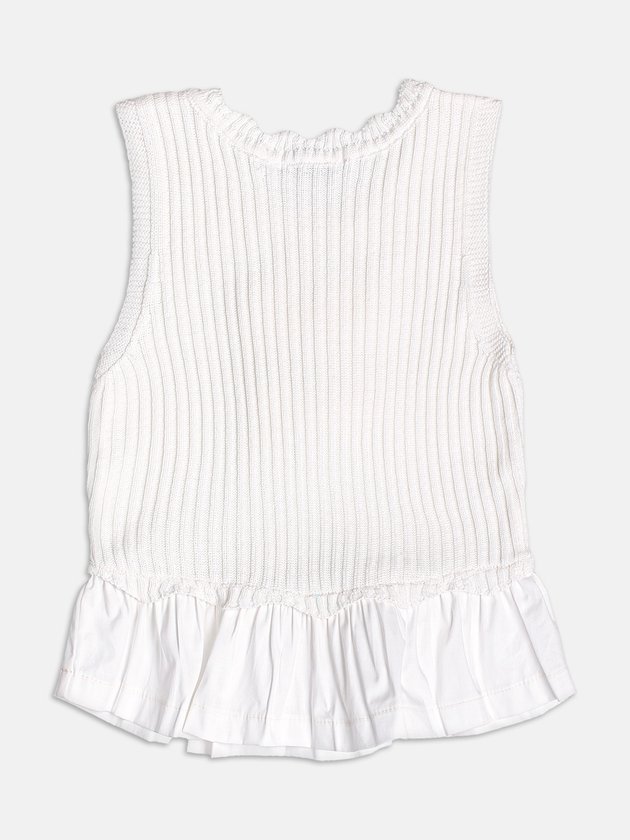 Essa blusa off white em tricot leve conquista pelos laços aplicados no centro, que trazem um charme clássico ao visual. O tricot tem textura delicada, com babado adicionado na barra, peça ideal para compor looks elegantes nos dias amenos do verão. Pode ser usada com saias românticas ou shorts descontraídos, equilibrando o estilo com sofisticação. Uma peça versátil e encantadora, perfeita para o guarda-roupa das pequenas fashionistas.