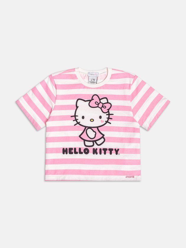Essa blusa traz a doçura do verão em cada detalhe, com listras em rosa suave e a Hello Kitty estampada em versão charmosa. A peça une conforto e estilo, com modelagem soltinha e tecido leve ideal para os dias de sol. O desenho delicado da personagem conversa com os tons da peça, criando uma composição harmoniosa. Fácil de combinar com shorts, saias ou jeans da coleção. Uma peça versátil para compor looks fofos e descontraídos. Ref.: H6344