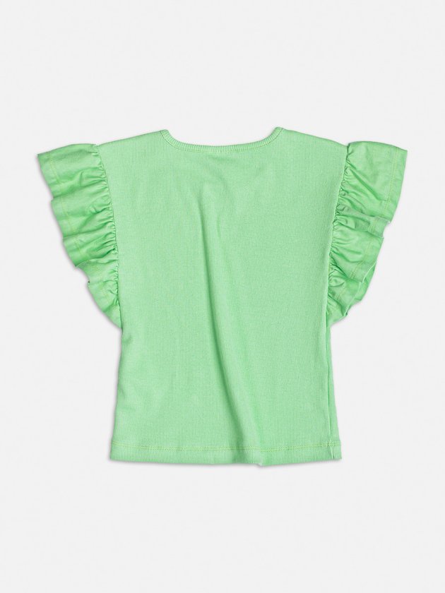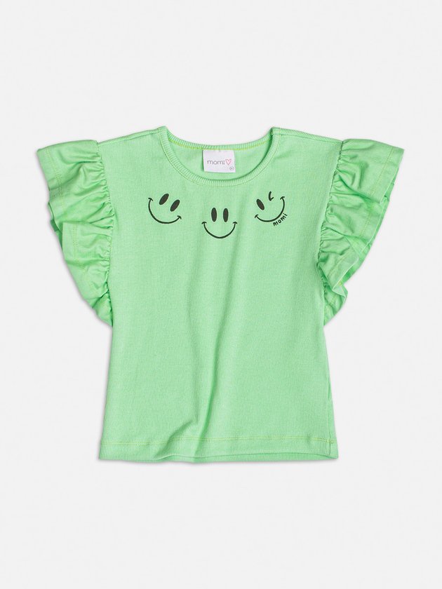 Adicione um sorriso ao vestuário da sua menina com a Blusa Verde com Babadinhos Smile. Com babados charmosos e um grande smile bordado, esta blusa é perfeita para um look cheio de alegria e estilo.