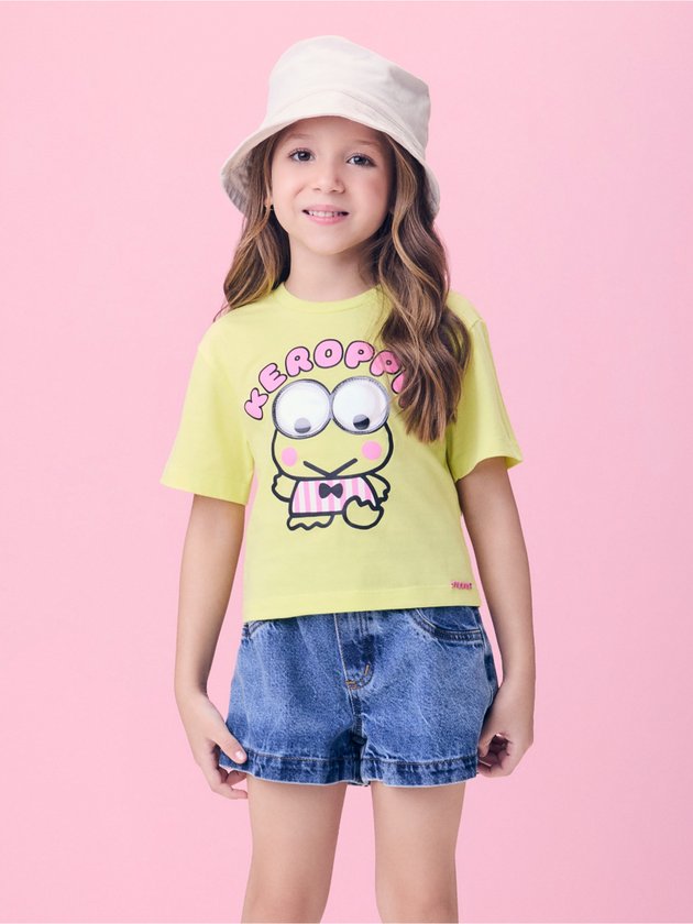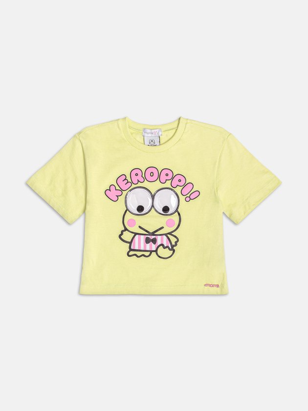 Fresca, divertida e cheia de estilo, essa blusa verde melon traz o personagem Keroppi em destaque, com cores vibrantes e estampa lúdica. O tom cítrico conversa com a paleta tropical da coleção e garante alegria ao visual. A malha confortável e a modelagem soltinha permitem liberdade para brincar e explorar. Uma peça que une conforto, tendência e o toque fofo dos personagens Sanrio. Ideal para um verão cheio de cor.