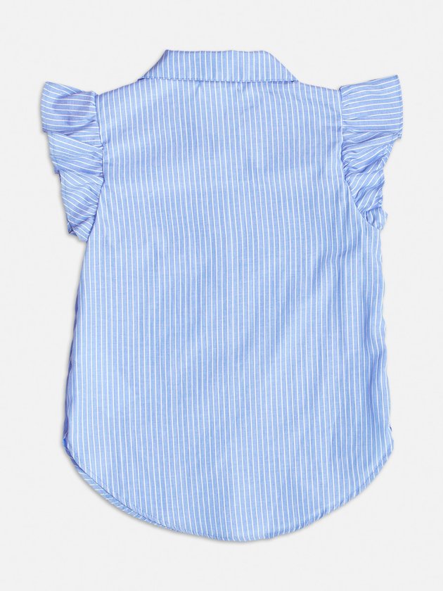 Destaque-se com essa camisa azul cheia de charme! Com babados delicados nos ombros e um padrão clássico de listras finas, essa peça é perfeita para criar looks leves e sofisticados. Ideal para eventos casuais ou combinações modernas para o dia a dia. Aposte na elegância do design atemporal com um toque feminino.