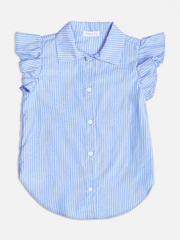 Este destaque-se com essa camisa azul cheia de charme! Com babados delicados nos ombros e um padrão clássico de listras finas, essa peça é perfeita para criar looks leves e sofisticados. Ideal para eventos casuais ou combinações modernas para o dia a dia. Aposte na elegância do design atemporal com um toque feminino. Ref.: H6023