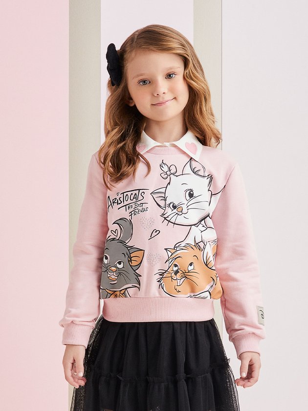 casaco de moletom rosa infantil Momi é um encanto licenciado pela Disney, apresentando estampa das gatinhas mais apaixonantes, as meninas vão adorar o visual fofo e divertido. Em seus detalhes trás acabamentos em ribana, etiqueta decorativa da marca e parte interna sem felpa. Composição: 100% algodão. Ref.: H4994