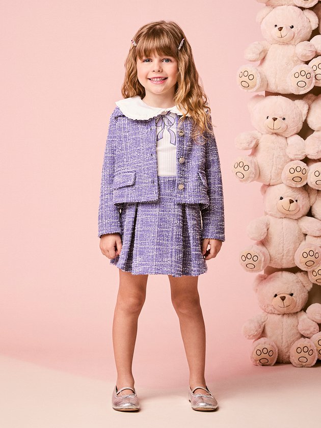 O Casaco Infantil de Tweed com Brilho é a escolha perfeita para quem busca unir estilo e elegância no look das pequenas. Com sua textura clássica de tweed e acabamento em fios reluzentes, ele cria um efeito visual moderno e delicado ao mesmo tempo. O tom roxo vibrante traz personalidade, enquanto os botões decorativos elevam o charme e dão o toque final de sofisticação. A modelagem é confortável, quentinha e ideal para dias mais frescos, permitindo combinações com vestidos, calças ou saias. Versátil e marcante, é uma peça que transforma qualquer produção em um look cheio de presença e graça infantil.