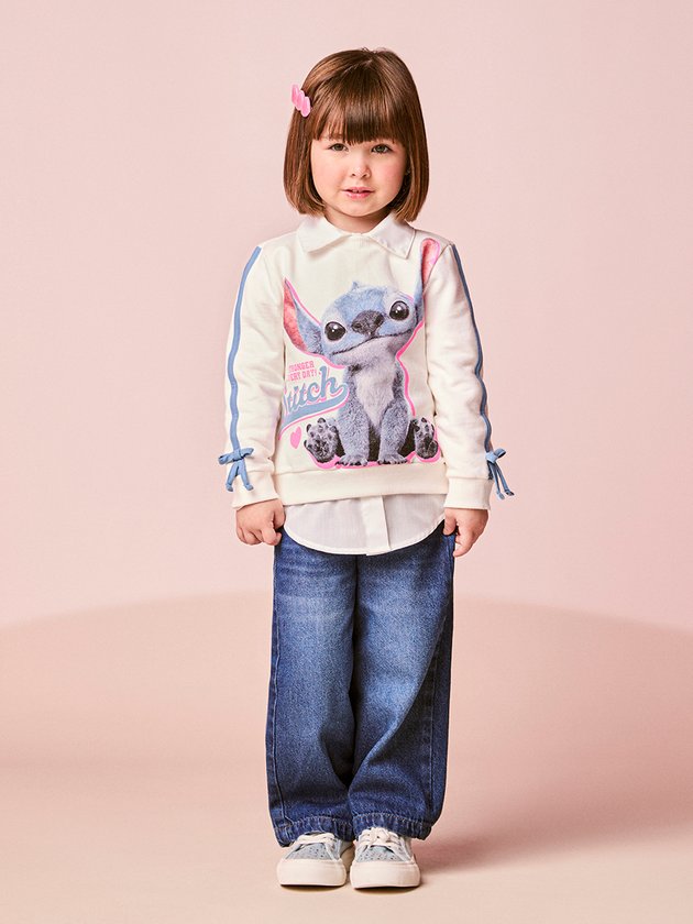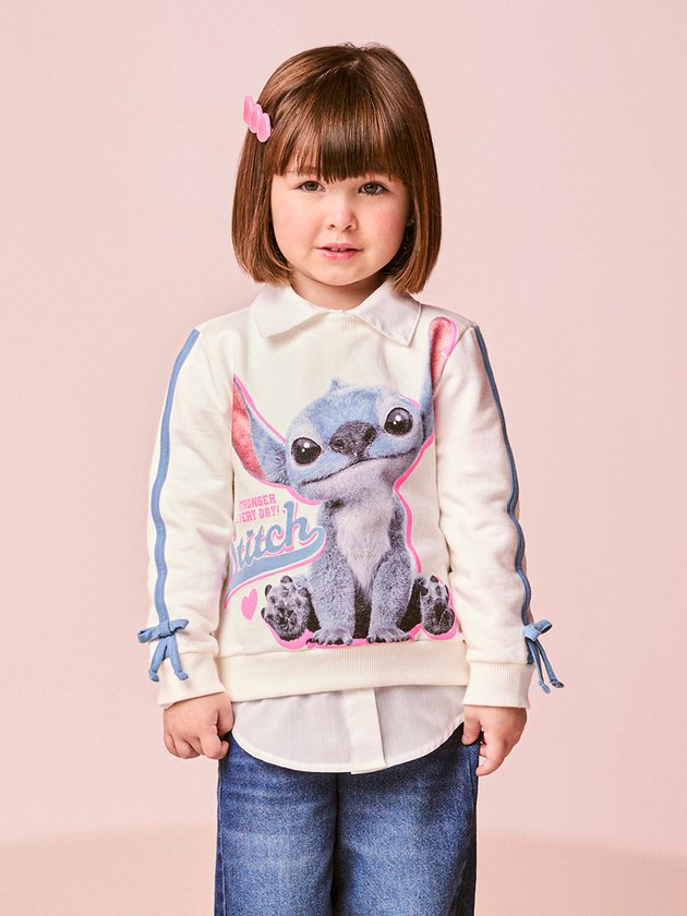 O Casaco Infantil do Stitch com Lacinhos entrega fofura e estilo em dose máxima. Em off white, a peça destaca o Stitch em estampa de alta definição com contorno rosa neon, criando um visual divertido e cheio de energia. As mangas recebem faixas azuladas e lacinhos delicados, que deixam o look ainda mais especial um detalhe que é puro charme e traduz o toque lúdico da Momi. O moletom é macio, quentinho e possui gola, punhos e barra canelados para garantir aconchego durante todo o inverno. Uma peça que combina conforto, imaginação e aquele brilho leve que faz as mães escolherem sem pensar duas vezes.