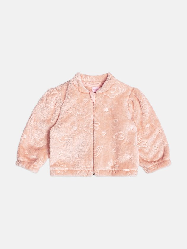 O Casaco Infantil Peluciado de Corações Momi é a escolha ideal para manter as pequenas quentinhas e cheias de charme nos dias frios. Confeccionado em pelo sintético de toque extremamente macio, traz estampa alegre de corações e arco-íris, transmitindo toda a doçura da marca. O modelo conta com gola estruturada com reforço em friso, mangas levemente franzidas e punhos com elástico funcional para um caimento confortável. A barra também possui elástico que ajuda a manter o calor corporal. O fechamento em zíper de nylon possui vista interna em suedine, que forma uma proteção suave e segura. Um casaco encantador que une conforto, estilo e muito amor em cada detalhe.