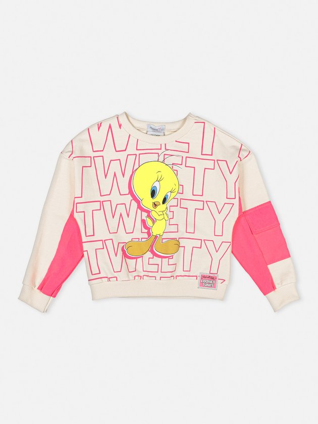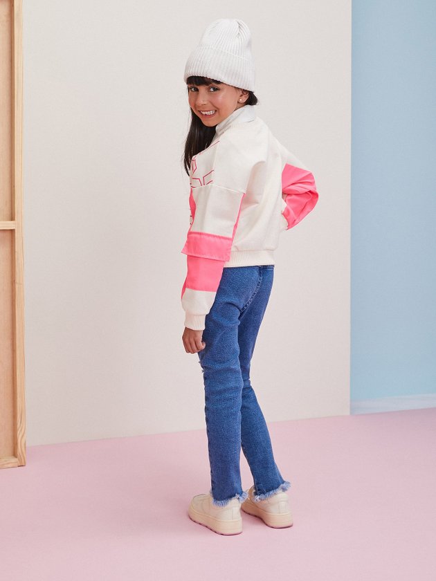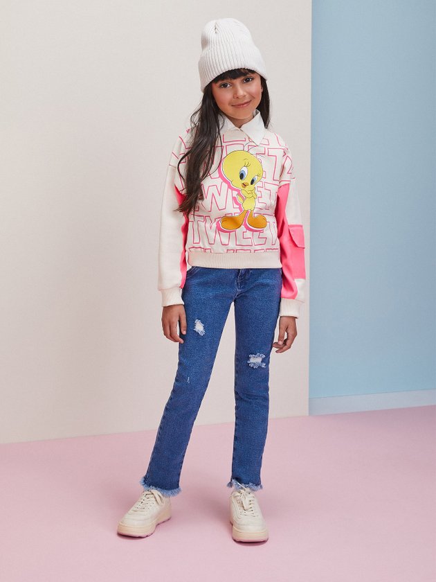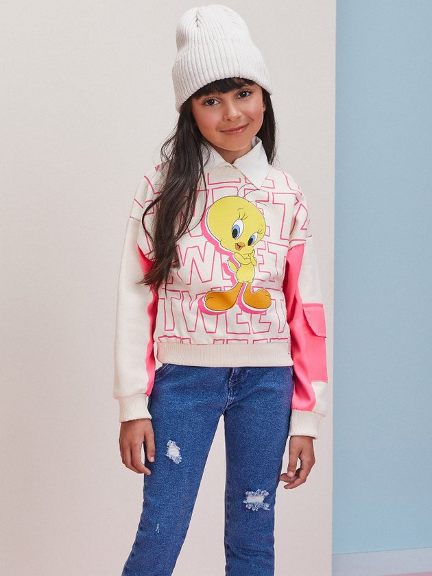 Confeccionado em moletom sem felpa, o casaco do Piu-Piu Momi traz visual único e fashion, combine ele com calça jeans ou de sarja. Em seus detalhes conta com bolso corta vento nas mangas na cor rosa neon, modelagem comfy e etiqueta decorativa do Looney Tunes. Composição: 100% algodão. Ref.: H4179
