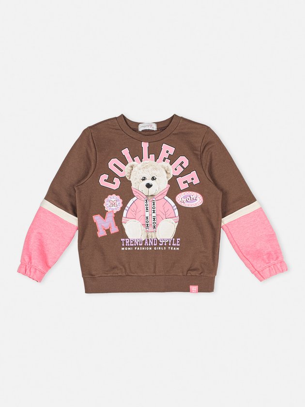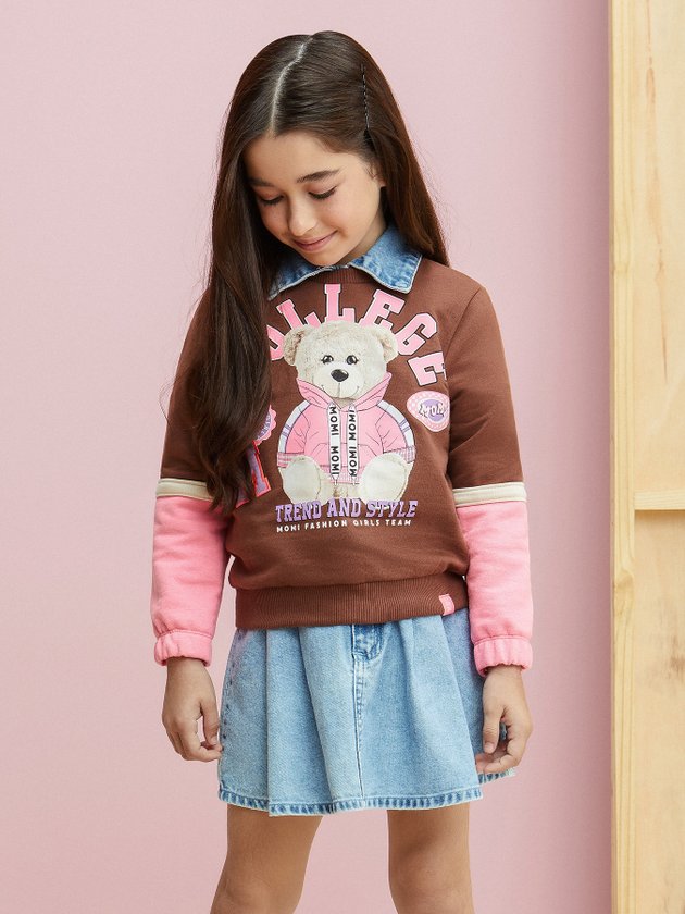 O casaco de moletom infantil Momi traz estampa fofa de ursinho e mangas na cor rosa. Além de ser uma peça confortável e que deixa as meninas quentinhas, traz barra em ribana, patch e etiqueta decorativa. Ideal para os dias mais frios. Composição: 100% algodão. Ref.: H4120