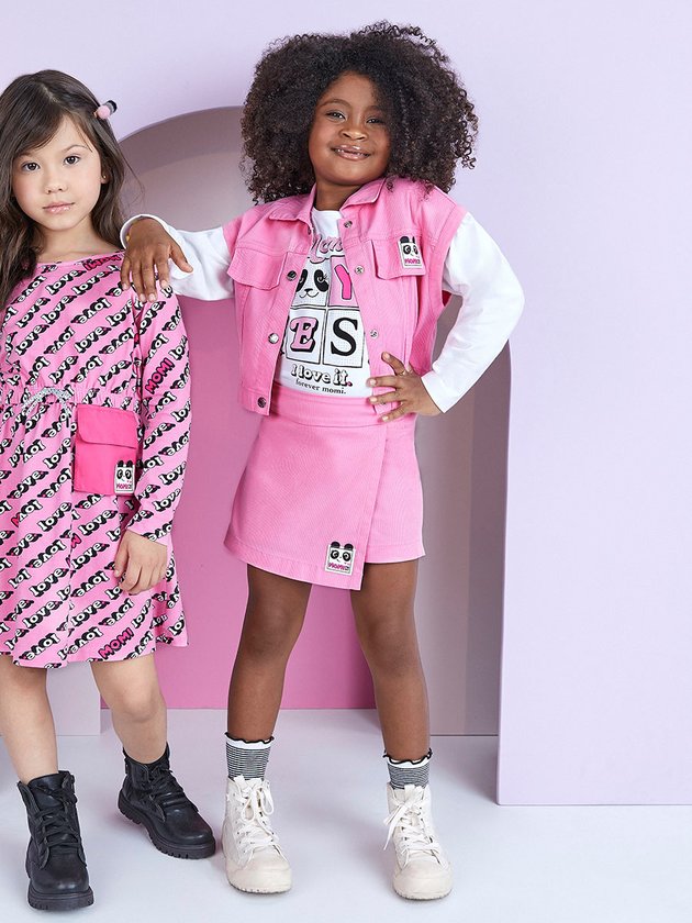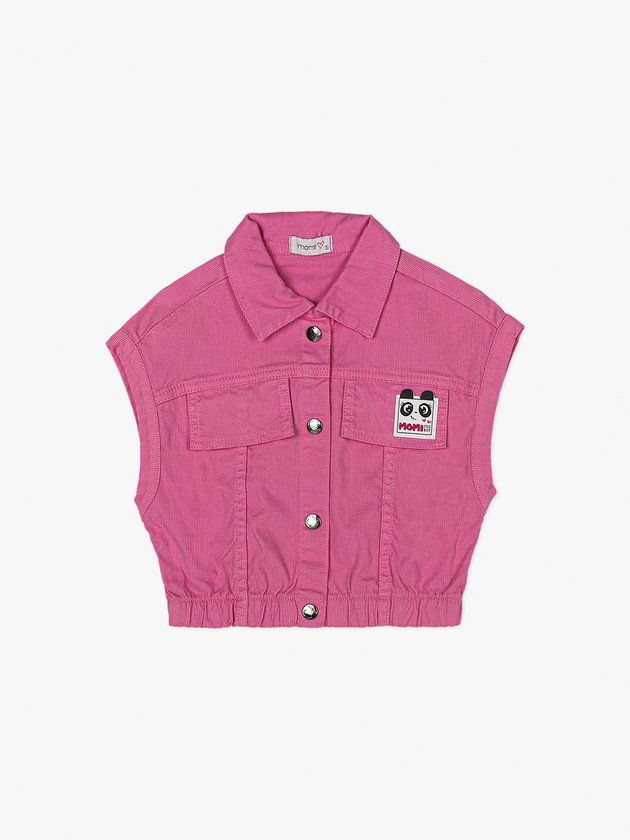 Colete Infantil Momi confeccionado em Cotelê na cor rosa. Possui fechamento frontal com botão e gola alta que deixa a peça mais charmosa. Frente com aplicação de etiqueta decorativa na lapela que finalizada com muita exclusividade. Composição: 98% Algodão e 2% Elastano Ref.: H3344