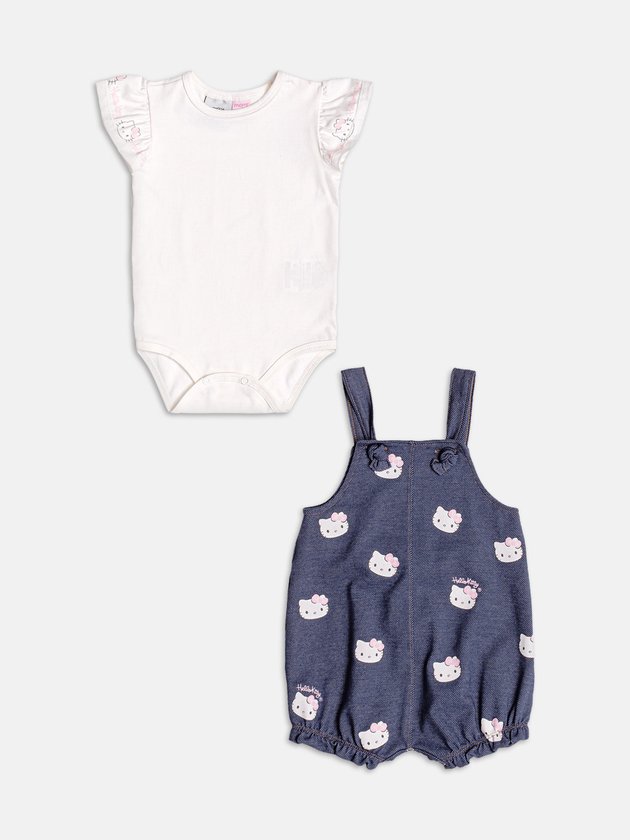 Fofo e super versátil! O conjunto traz blusa com estampa da Hello Kitty e detalhe de strass, enquanto o short em jeans leve tem modelagem soltinha, com cós de elástico e acabamento impecável. Um look prático, confortável e cheio de charme. Ref.: C2660