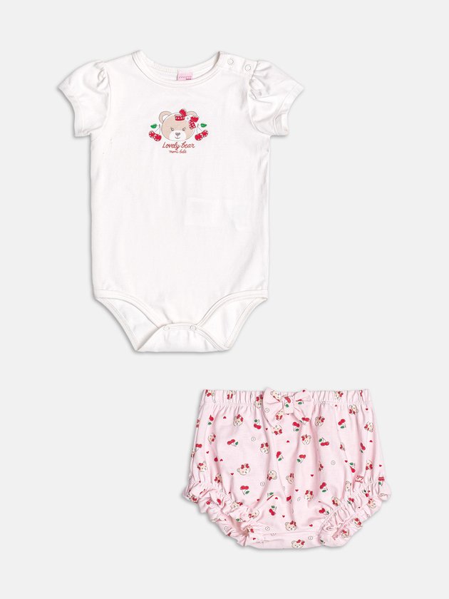 Fofo, romântico e super estiloso! A blusa traz estampa de cerejinhas com detalhe de gola boneca e botões decorativos no peitoral. O short, em tom coordenado, tem modelagem soltinha e cós elástico, proporcionando conforto e muito charme. Um look perfeito para ocasiões especiais ou para deixar o dia a dia mais encantador.
