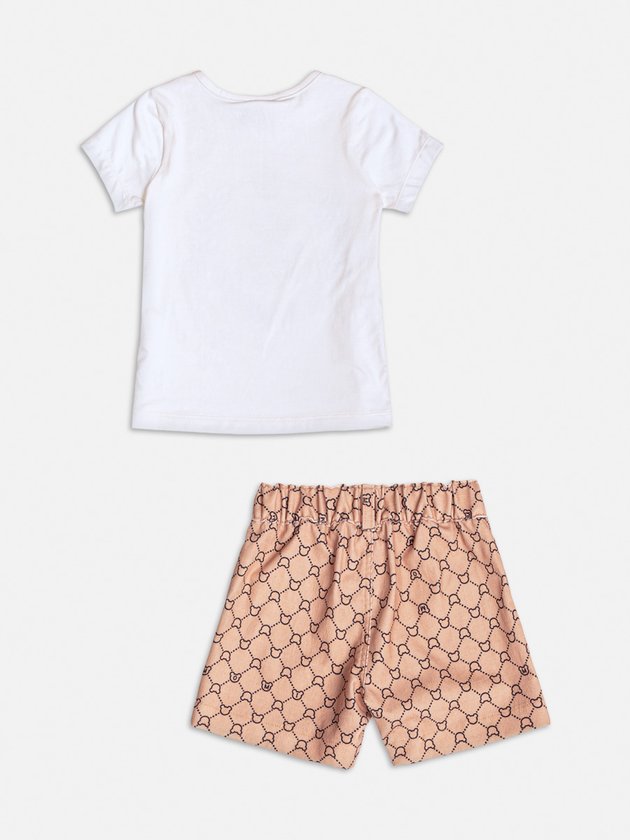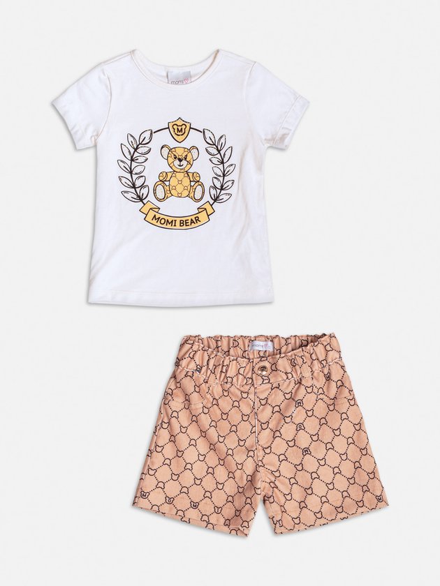 A blusa de manga curta com estampa de urso e o short geométrico trazem leveza e diversão para o look das pequenas. Ref.: H6514