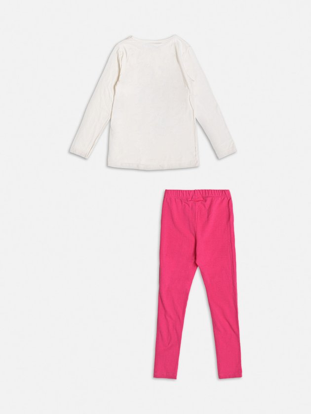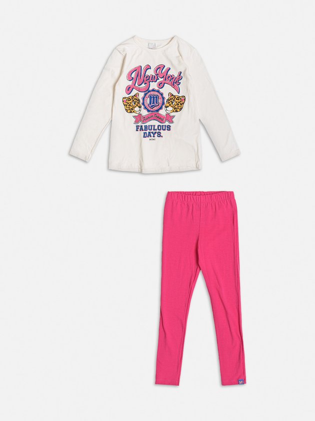 Puro charme e fashionismo! O conjunto Momi é confeccionado no conforto da malha e é desenvolvido na cor rosa com estampa de lettering e animal print. Em seus detalhes ele traz modelagem básica. Composição: 96% Algodão e 4% Elastano. Ref.: H5370