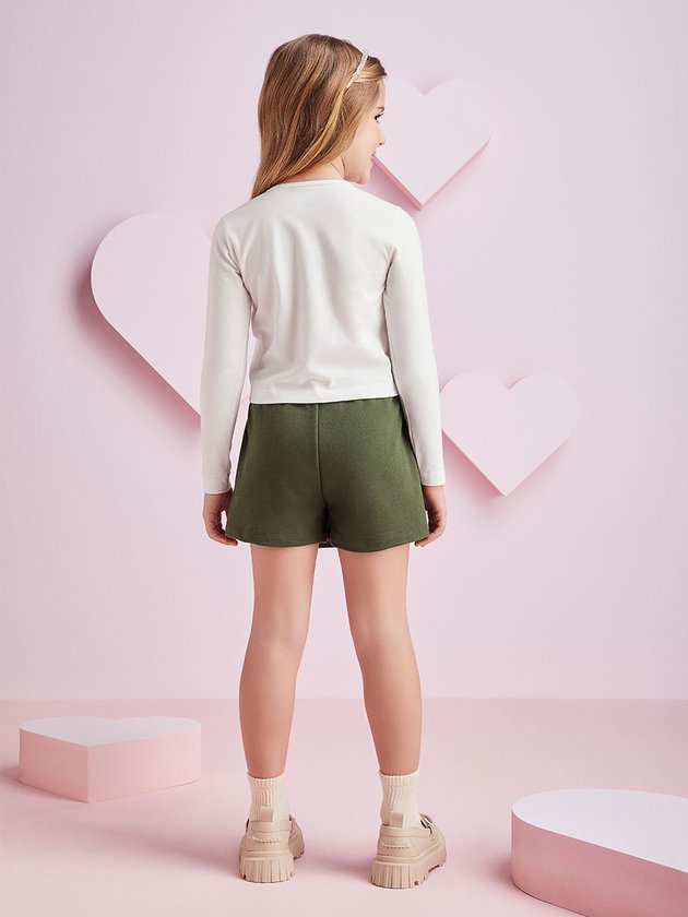 O conjunto Momi é puro charme e fashionismo! A blusa manga longa é confeccionada em algodão e é desenvolvido na cor off white com estampa em lettering. O short saia traz modelagem básica na cor verde militar. É impossível não se apaixonar. Composição: Blusa: 96% algodão, 4% elastano. Short Saia: 100% algodão. Ref.: H5380