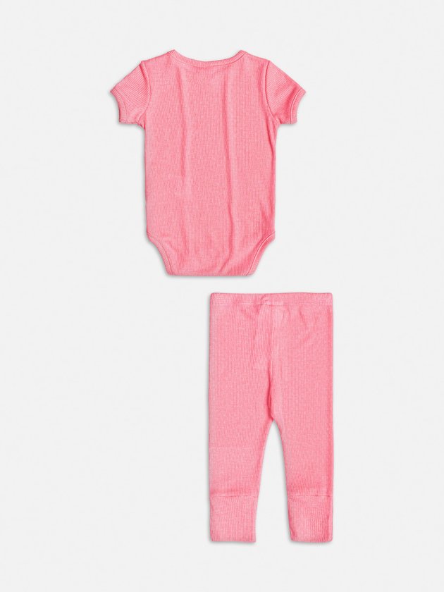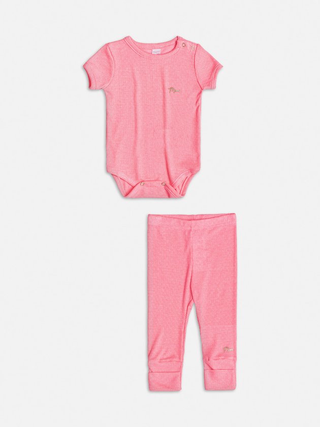 Conjunto Rosa de Body Manga Curta e Calça