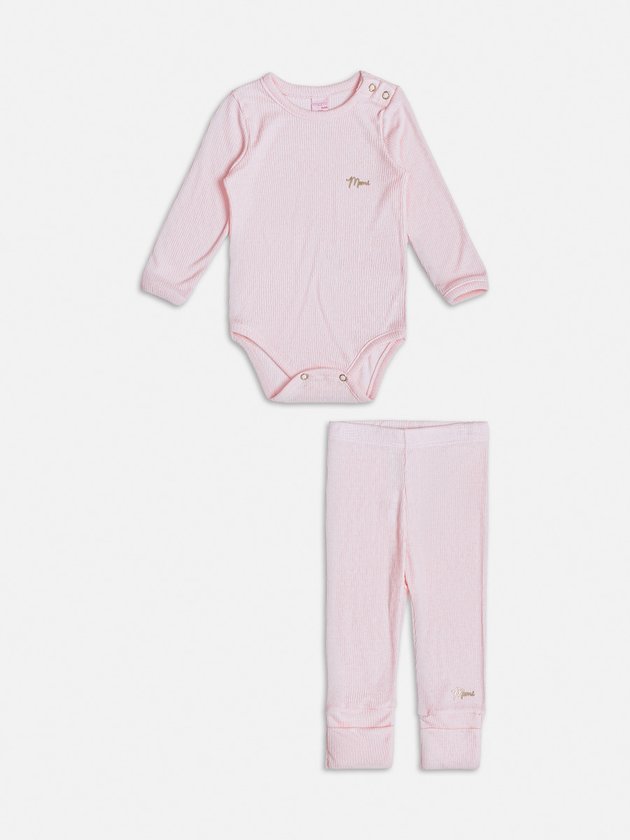 Este conjunto de body e calça rosa claro da Momi é ideal para manter as pequenas confortáveis e estilosas em dias frescos. Com um tecido macio e toque delicado, o body possui mangas longas e fechamento por botões no ombro e entre as pernas, facilitando a troca. A calça, com cós elástico e punhos ajustados, garante um ajuste seguro e confortável, ideal para o dia a dia. A cor suave e o design clássico tornam este conjunto uma opção versátil e charmosa para diversas ocasiões, com o toque de delicadeza que a Momi proporciona. Ref.: C1967.