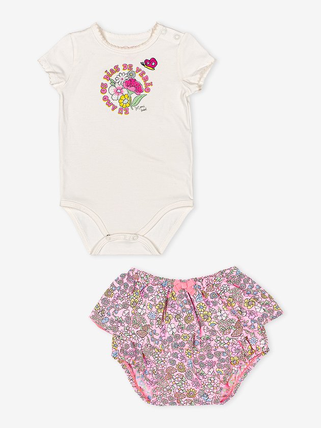 O conjunto de bebê Momi é composto por body e short com babado, nos seus detalhes ele conta com elástico no cós, botões de pressão, acabamento com elástico e mangas com acabamento frufru. Conjuntos são opções práticas para o dia a dia das meninas com peças que podem ser usadas juntas ou em looks diferentes, impossível não se apaixonar. Composição - Body: 85% algodão no mínimo. Short: 100% algodão. Ref.: C1617