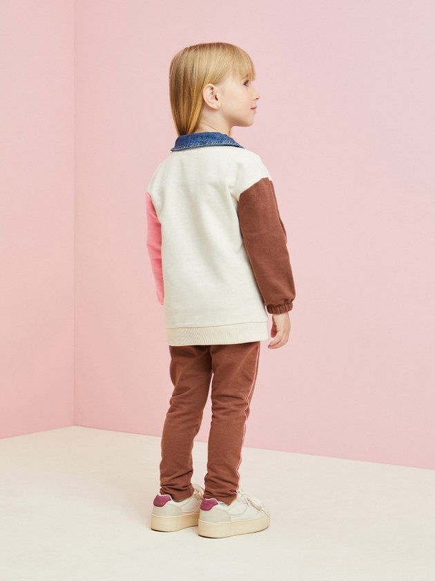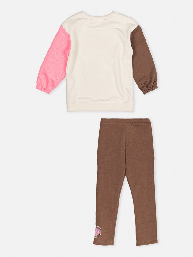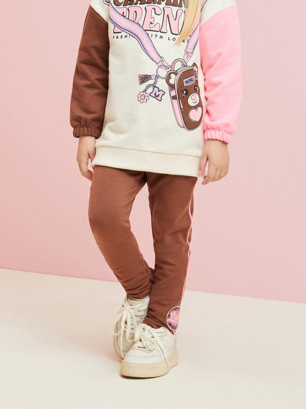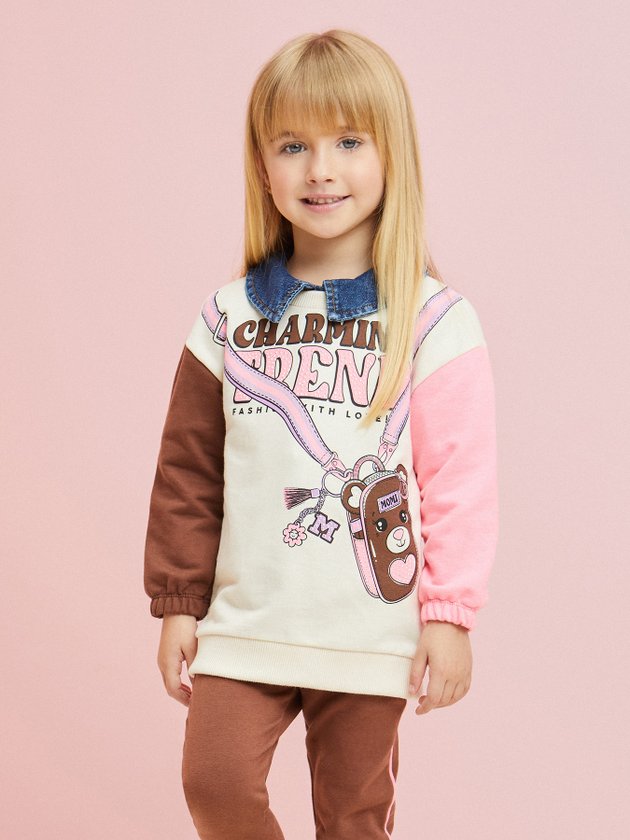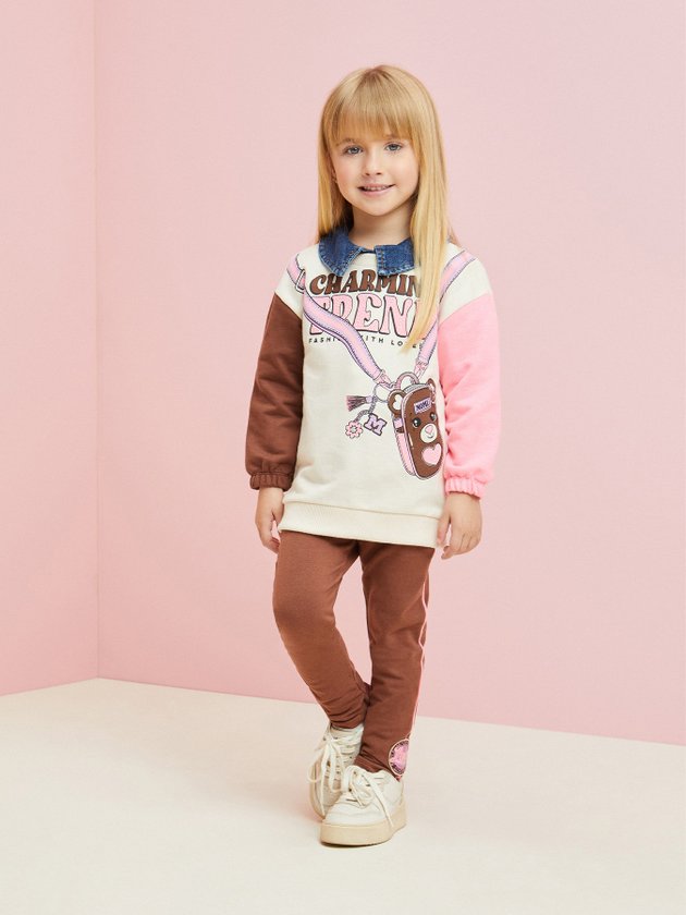 O conjunto infantil Momi é composto por casaco de moletom e legging elaborada em molecotton. Sendo um look perfeito para o inverno, traz em seus detalhes aplicação de strass na estampa, punhos e cintura com elástico aumentando o conforto. Composição: 100% algodão. Ref.: J5089