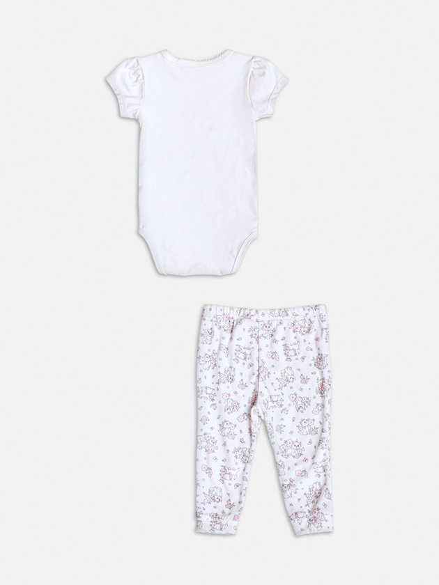 Este delicadeza e charme definem este conjunto da Marie! O body branco de manga longa com estampa suave complementa a calça com padronagem floral, trazendo um toque de sofisticação e alegria. Perfeito para momentos especiais ou para looks casuais com estilo. Ref.: C2473