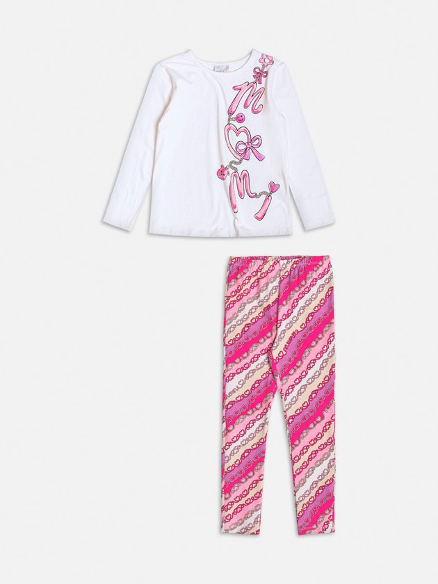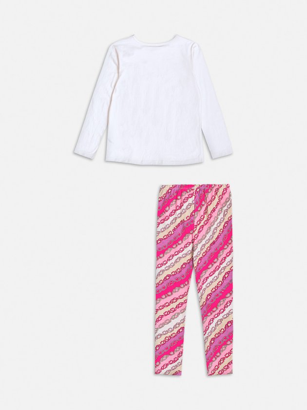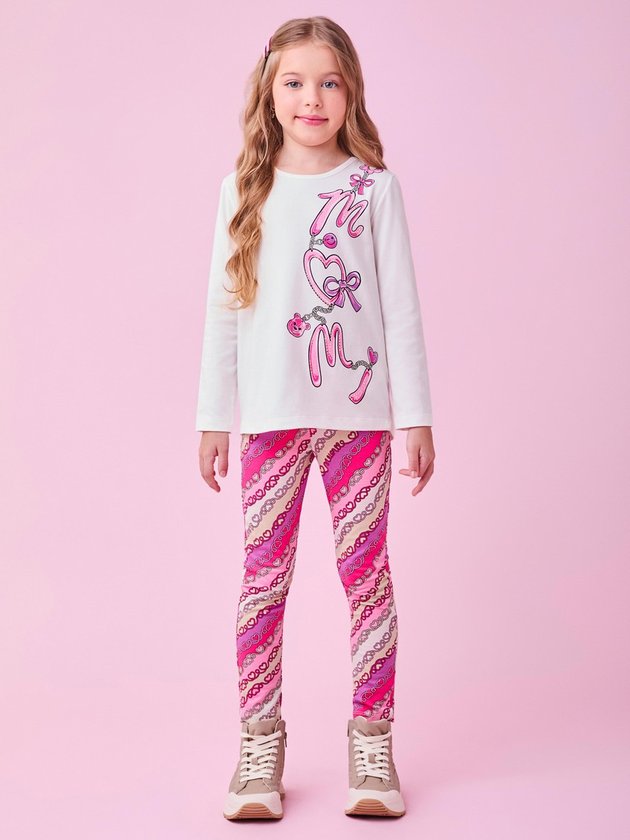 Este encantador e cheio de charme, esse conjunto traz uma blusa de manga longa com estampa delicada de lacinhos e correntes, adicionando um toque romântico e sofisticado ao look. A legging estampada complementa a produção com cores vibrantes e um design moderno, garantindo conforto e estilo para diversas ocasiões. Perfeito para quem ama um visual feminino e cheio de personalidade! Ref.: H6490