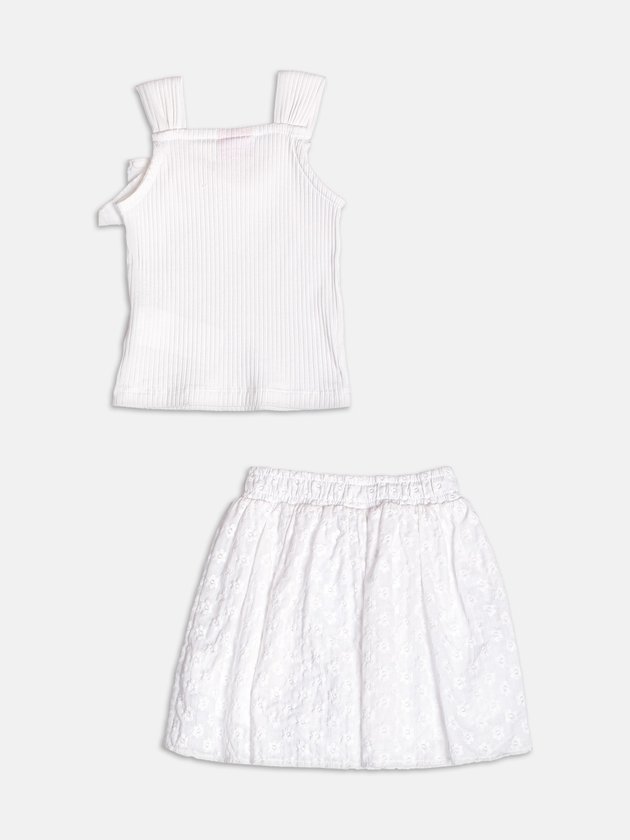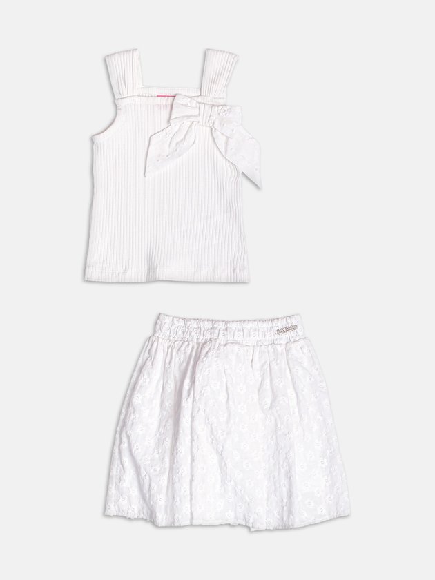 Esse conjunto traz a delicadeza da laise com uma estampa floral suave e um laço central que completa o visual com charme. A blusa tem recorte reto e acabamento impecável, enquanto saia em laise acompanha o look com caimento leve e romântico. Uma peça cheia de textura, perfeita para meninas que amam se vestir com graça e estilo. Ideal para dias de sol, encontros e momentos especiais. Ref.: J6895