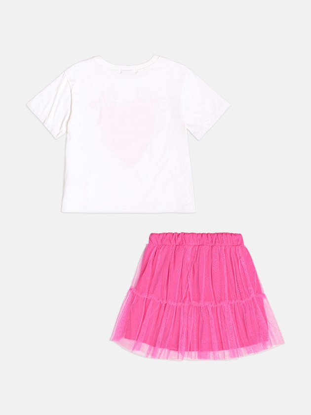 O Conjunto Infantil de Coração com Glitter une conforto, brilho e aquela energia divertida que as pequenas amam. A blusa manga curta é feita em malha macia e traz um coração rosa com laços ilustrados e lettering delicado, destacando o visual moderno e doce da peça. A saia em tule pink com glitter entrega movimento, leveza e um brilho especial a cada passo, criando um efeito super encantador. O cós confortável garante praticidade para o dia a dia, enquanto o design elevadinho mantém o look sempre alinhado. Ideal para passeios, festinhas e momentos especiais, esse conjunto combina estilo e personalidade em uma proposta super feminina, delicada e cheia de atitude.