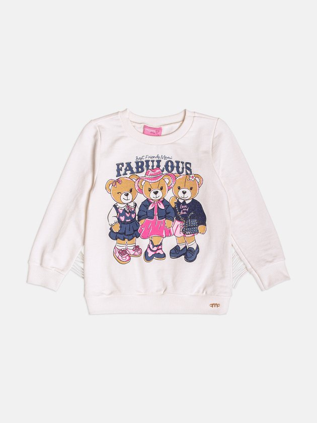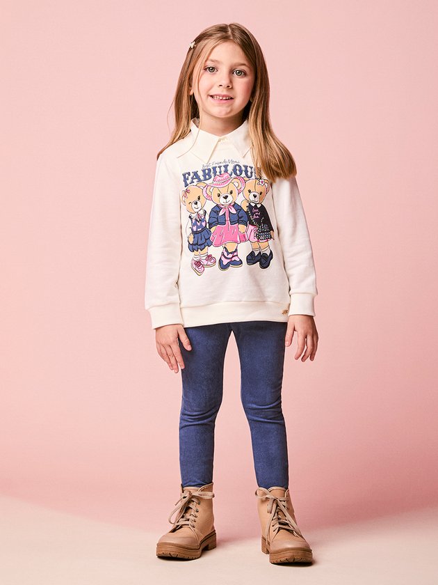 O conjunto moletom infantil de ursinhas é aquele look que combina conforto e estilo de um jeito superfofo. A blusa em moletom leve traz três ursinhas vestidas com peças modernas e coloridas, deixando o visual divertido e cheio de atitude. A calça azul adiciona praticidade e acompanha o ritmo das brincadeiras do dia a dia, oferecendo caimento confortável e toque macio. É uma produção que funciona para passeios, escola e momentos de diversão, sempre mantendo a criança quentinha e estilosa. Um conjunto versátil, fácil de combinar e que conquista pelo charme lúdico das estampas.
