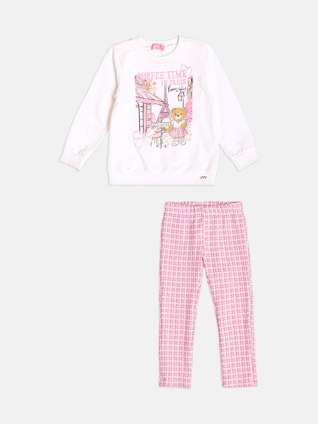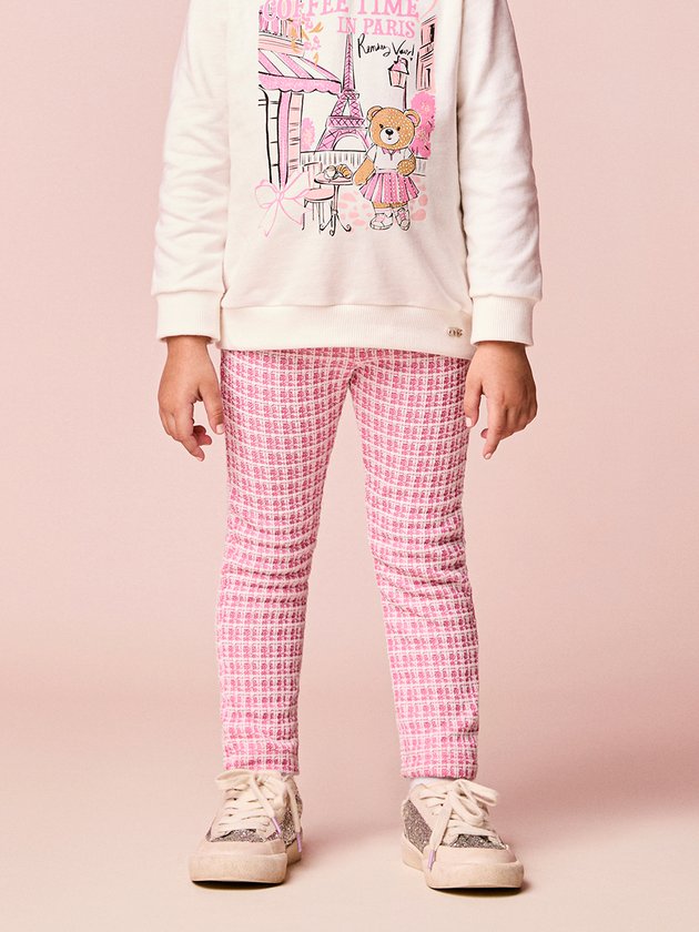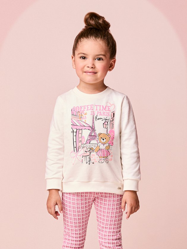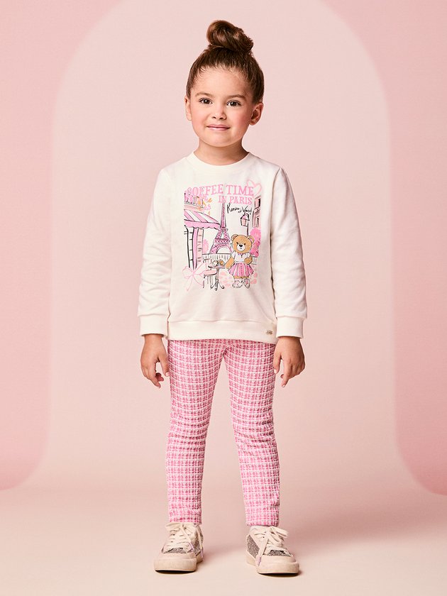 O Conjunto Infantil Rosa de Ursinha traz um mix perfeito de fofura e conforto. A blusa tem estampa charmosa com tema parisiense e a ursinha estilosa que dá o toque especial ao look. A calça em tweed rosa completa com elegância e maciez. Um conjunto delicado, moderno e ideal para os dias mais fresquinhos, garantindo estilo no dia a dia das pequenas. Obs: Moletom sem felpsa
