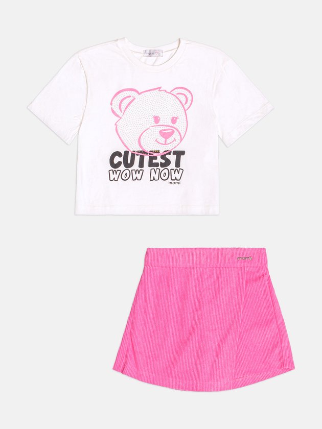 O Conjunto Infantil em Veludo de Ursinho combina conforto e muito estilo em um look pensado para brilhar no dia a dia. A blusa possui estampa de ursinho com aplicação delicada de strass, criando um ponto de luz moderno e divertido. A saia de veludo pink acrescenta textura suave, toque macio e caimento impecável, trazendo movimento e leveza. Com cintura confortável e design atual, o conjunto entrega praticidade e personalidade para diferentes ocasiões, permitindo que a menina se sinta livre, estilosa e cheia de charme enquanto aproveita cada momento. Ref.: H7158