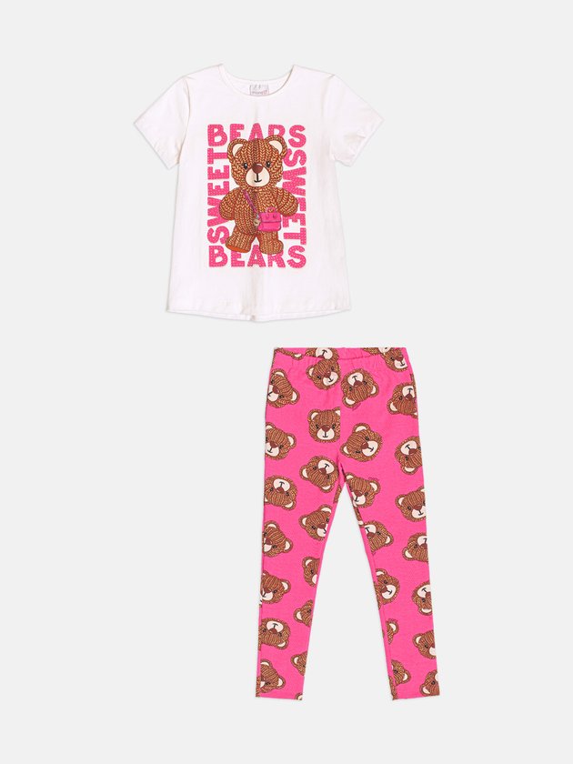 O Conjunto Infantil Manga Curta de Ursinho Tricot é puro charme para o guarda-roupa das pequenas. A blusa manga curta destaca o ursinho com efeito de tricot e detalhes que deixam o visual ainda mais especial. A modelagem confortável garante liberdade total para brincar e se movimentar. A legging vem com estampa divertida de ursinhos, criando um look combinadinho que chama atenção pela fofura e personalidade. É a escolha ideal para quem busca um conjunto prático, estiloso e cheio de cores vibrantes para o dia a dia. Ref.: H7098
