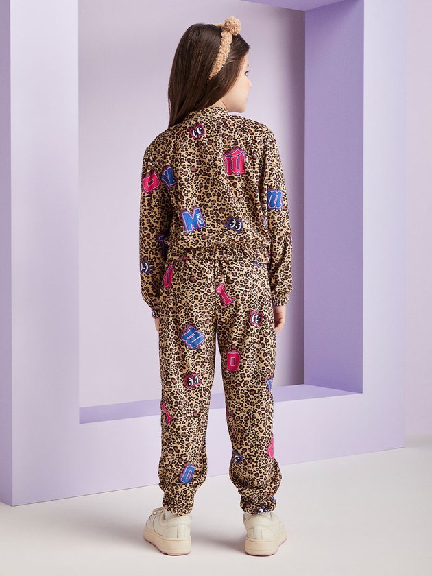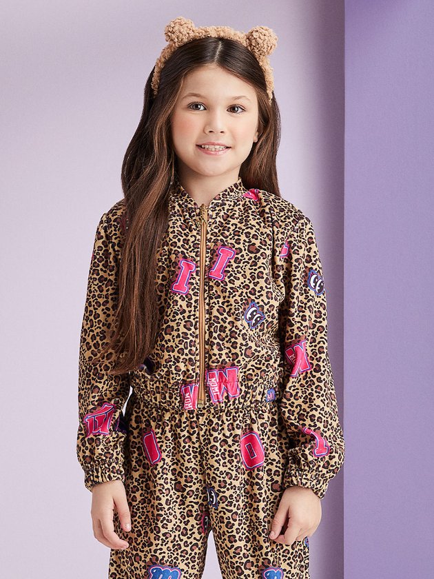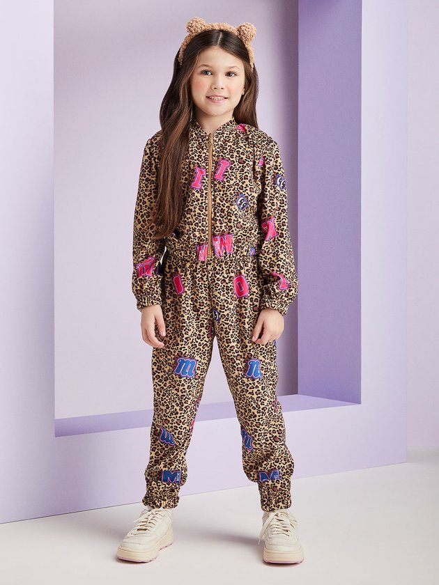 O conjunto Momi garante muito conforto e fofura para as meninas! Confeccionada em plush, o conjunto traz casaco de manga longa com elástico nos punhos, e barra. Ambas as peças contam com estampa super divertida de animal print com letras coloridas. Composição: 100% poliéster. Ref.: H5365