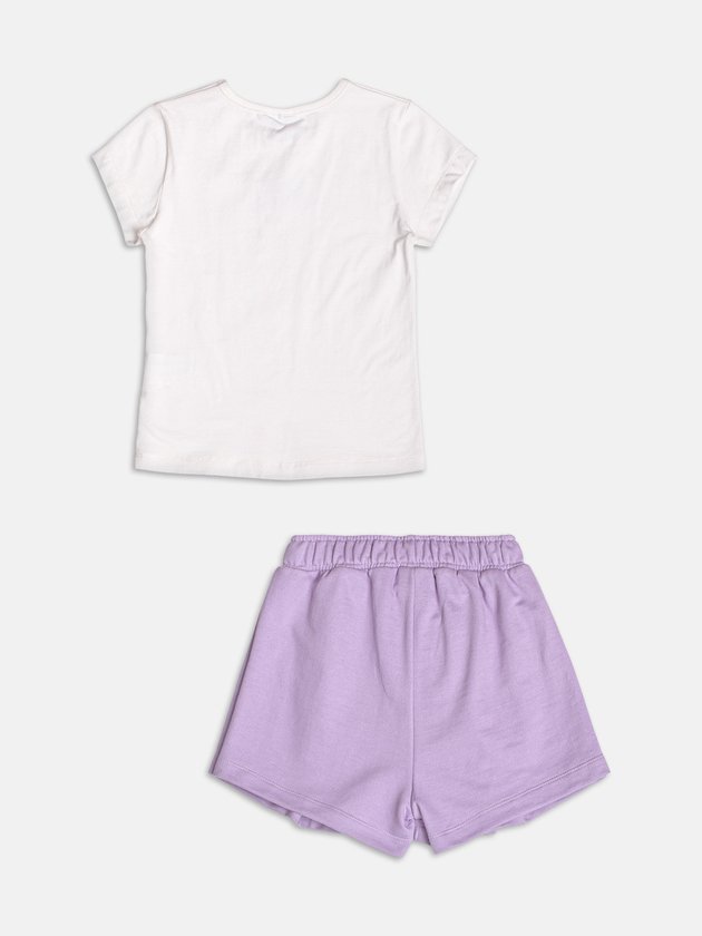 Um look que une leveza e muito charme! A blusa lilás traz patch de borboleta bordado no centro, com detalhes em strass que iluminam a peça. O short, também em lilás, tem modelagem soltinha, cós elástico e acabamento delicado. Ideal para um visual romântico, moderno e cheio de personalidade. Ref.: H7074