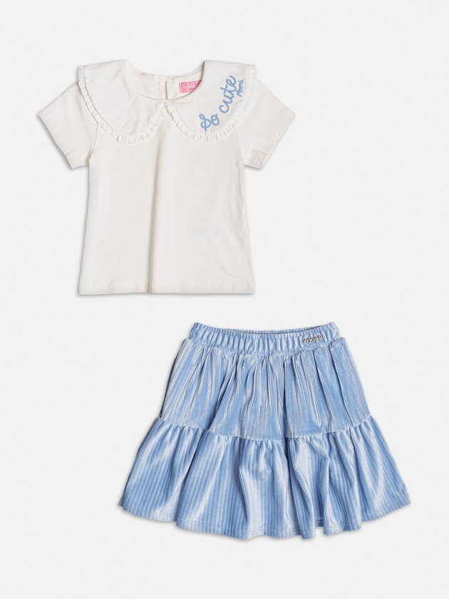 O conjunto de blusa manga curta e saia é uma combinação prática e estilosa. A blusa básica complementa a saia, criando um visual moderno e versátil. Ideal para o dia a dia ou para passeios, esse conjunto oferece conforto e estilo para as meninas. Ref.: J5874