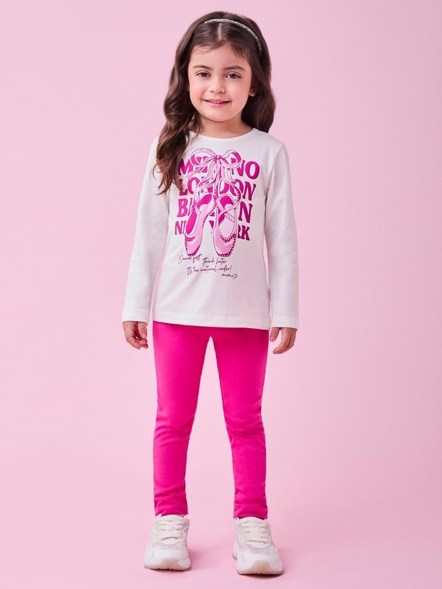 Blusa: 96% Algodão e 4% Elastano; Legging: 85% Algodão no mínimo