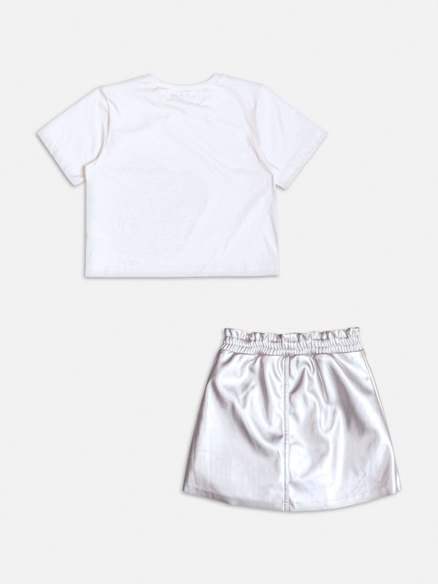 Este conjunto metalizado com estampa de urso e detalhes em strass é perfeito para brilhar em qualquer ocasião! Combinando um visual moderno e divertido, ele une conforto e estilo de maneira única. Ideal para as pequenas que adoram destacar sua personalidade com looks cheios de atitude. Ref.: H6195