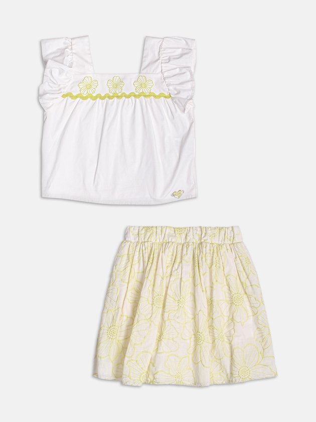 Elegante e encantador, esse conjunto off white em laise floral é a tradução da delicadeza. A blusa com recortes suaves conversa com a saia bordada, criando um visual arrumadinho e confortável. A textura da laise valoriza o acabamento e a estética romântica da estação. Um look perfeito para momentos especiais, com toque clássico e visual leve. Ref.: H6704