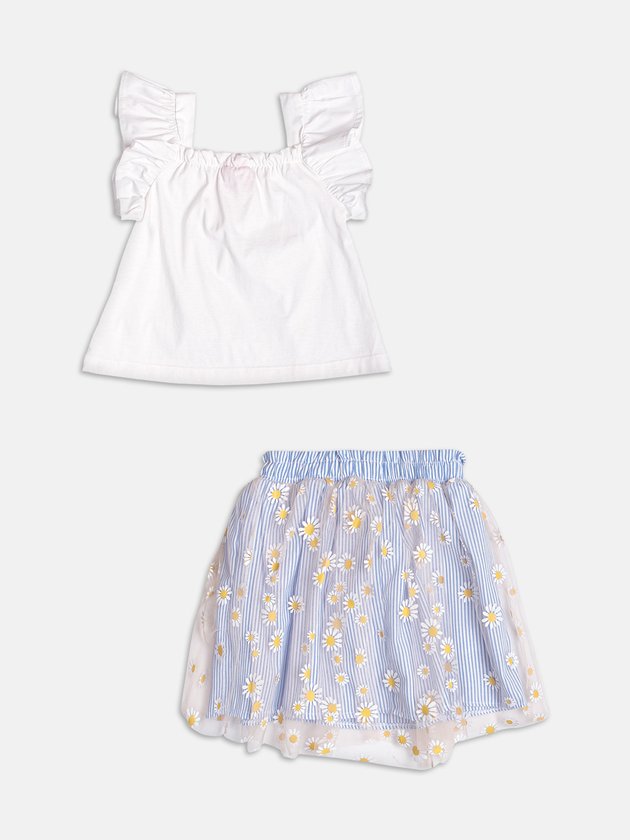 Delicado e sofisticado, esse conjunto off white em tule florido é perfeito para ocasiões especiais. A blusa traz conforto e leveza, enquanto a saia contém tule transparente suave com flores aplicadas em relevo . A proposta é romântica e refinada, com caimento leve e visual etéreo. Um look encantador para brilhar nos dias mais doces da estação. Ref.: J7162