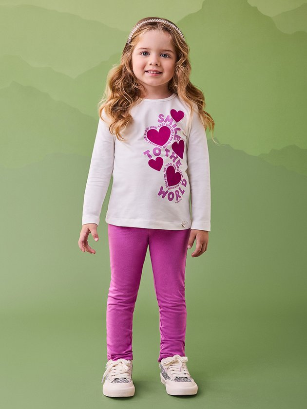 Com a combinação da blusa de manga longa, estampa em flocado pink e a mensagem "Smile to the world", garantem estilo e diversidade para a peça da Momi! O conjunto ainda conta com legging rosa que garante conforto total. Uma combinação linda para brilhar todos os dias.