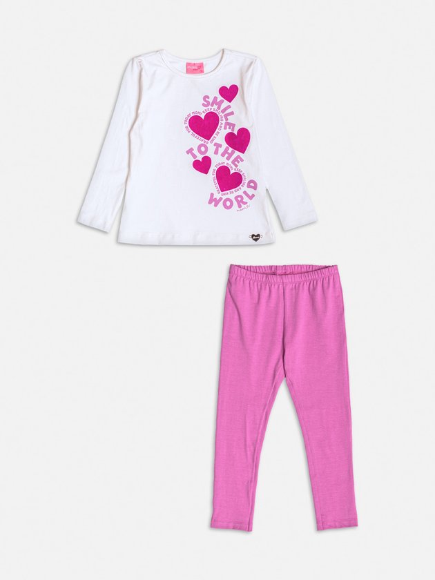 Este com a combinação da blusa de manga longa, estampa em flocado pink e a mensagem "Smile to the world", garantem estilo e diversidade para a peça da Momi! O conjunto ainda conta com legging rosa que garante conforto total. Uma combinação linda para brilhar todos os dias. Ref.: J6550