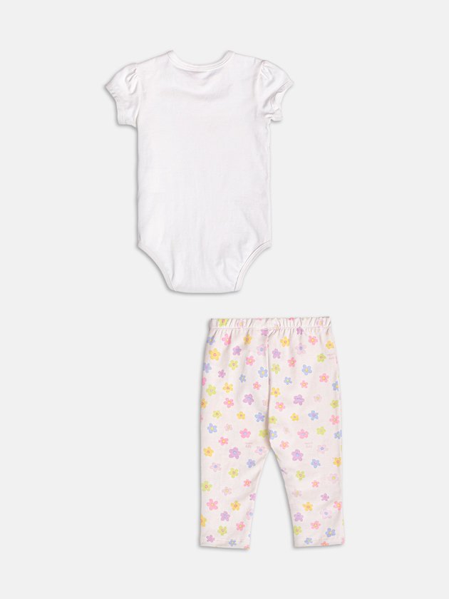 Feito para encantar, esse conjunto off white traz estampa de florzinhas miúdas em composição delicada e romântica. A blusa tem mangas bufantes e recortes leves, enquanto a calça acompanha com cós confortável e estampa total. Um visual perfeito para curtir dias especiais com leveza e beleza natural. Ref.: C2664